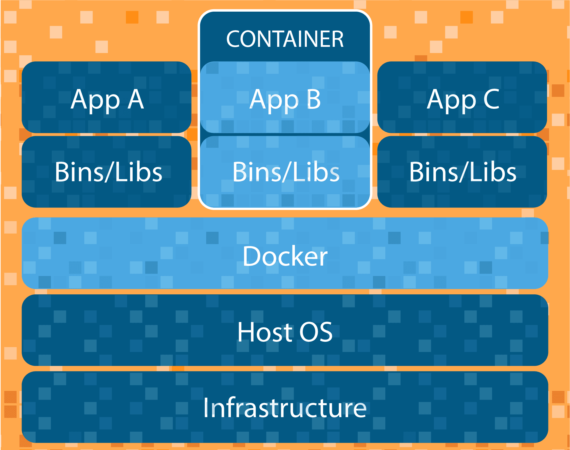 Is the execution environment for Docker. Containers are created from images. It is a writable layer of the image. You can package your applications in a container, commit it and make it a golden image to build more containers from it. Two or more containers can be linked together to form tiered application architecture. Containers can be started, stopped, committed and terminated. If you terminate a container without committing it, all the changes made to the container will be lost.