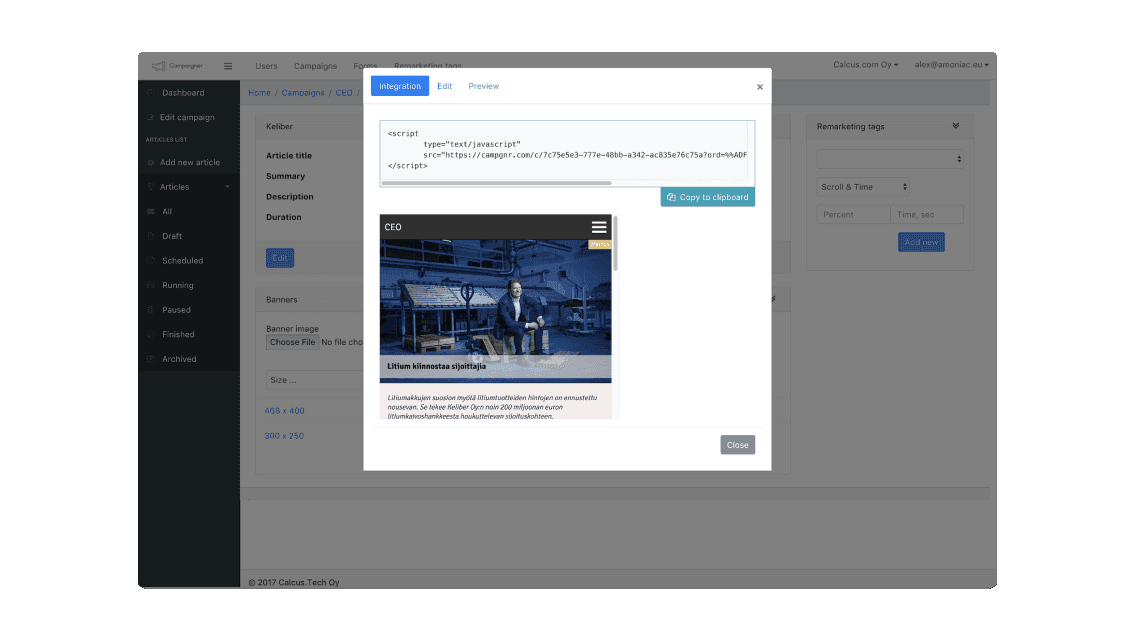 Calcus.com is a Finnish advertising company specializing in content marketing and native advertising. They provide services to the top Finnish companies and produce hundreds of articles and videos annually.